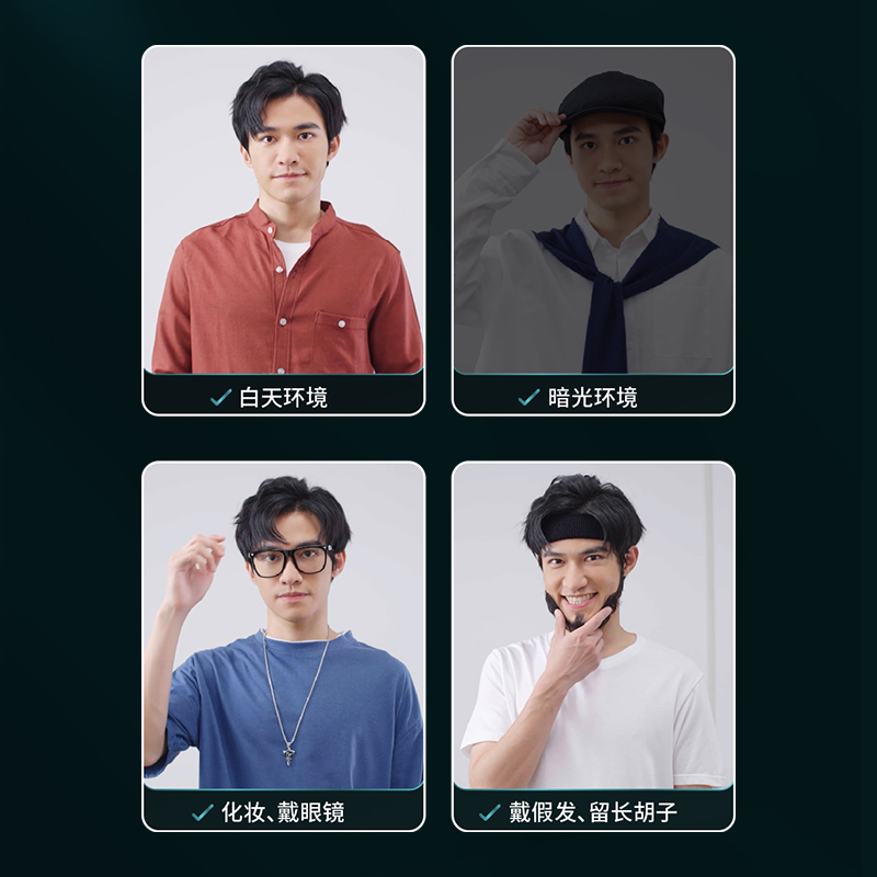 即使戴眼镜,变换造型、戴帽子等也不会受到干扰,人脸识别模组中的摄像头在暗光条件下也能准确捕捉面部信息,快速完成人脸识别。